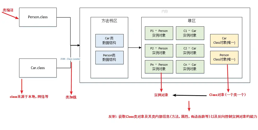 - 运行时类信息访问:反射机制允许程序在运行时获取类的完整结构信息,包括类名、包名、父类、实现的接口、构造函数、方法和字段等。